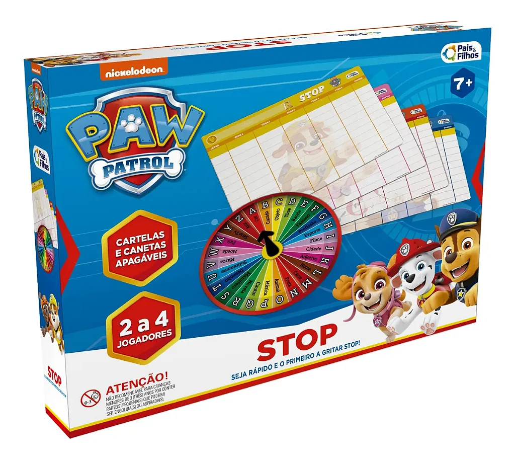 Chame a turminha e embarque em uma brincadeira cheia de ação com o Stop Patrulha Canina! Este jogo clássico ganhou um toque especial com os adorados personagens da Patrulha Canina, presentes nas cartelas e na roleta, tornando cada rodada ainda mais divertida e envolvente.
